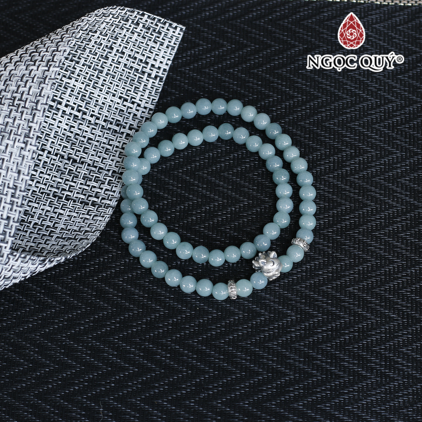 Vòng tay lam ngọc 2 line phối charm hồ ly 9 đuôi bạc mệnh thủy, mộc - Ngoc Quý Gemstones
