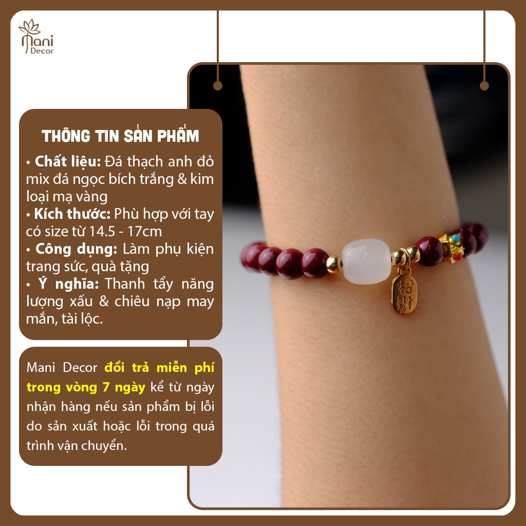 Vòng tay phong thuỷ đá thạch anh đỏ mix ngọc bích trắng, chiêu nạp tài lộc, may mắn - Mani Decor