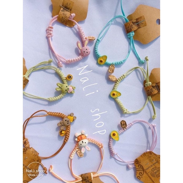 chất liệu: dây bện charm thú nhựa cứng, có chuông/ hoặc chữ có thể điều chỉnh kích thước vòng tuỳ ý