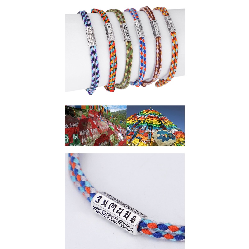 Vòng Tay Tết Chỉ Màu Charm Ommanipadmehum Handmade Phong Cách Tây Tạng Nepal
