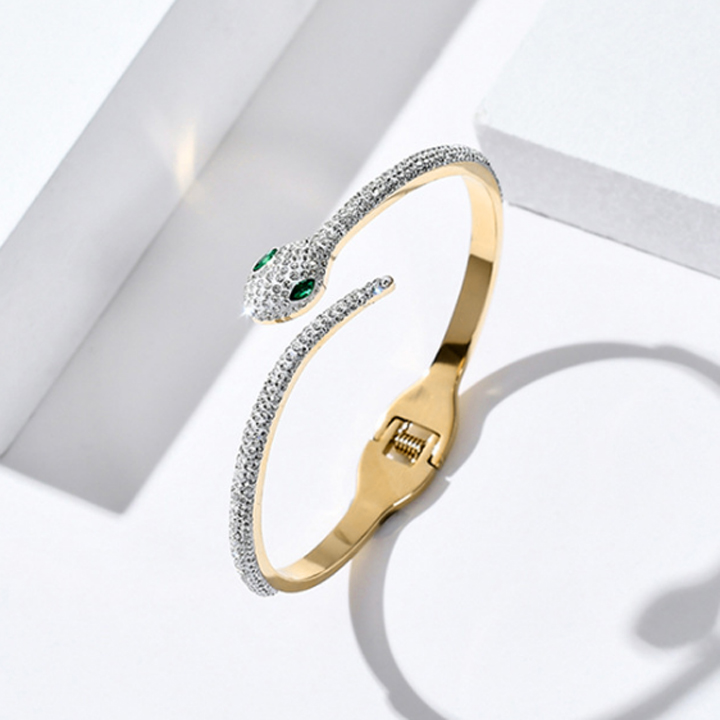 Vòng tay titan nữ hình rắn cá tính WVT510 Không đen không rỉ sét