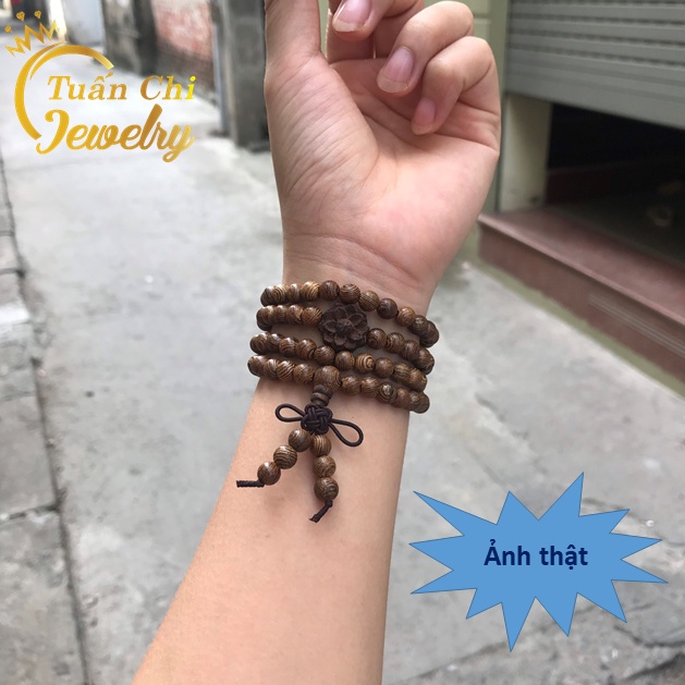 Vòng Tay Trầm Hương ⚡FREE SHIP⚡ Chuỗi Tràng Hạt 108 hạt- Trầm Tốc Hương Tự Nhiên Mix Hoa Sen, Tặng Hộp Gấm Sang Trọng
