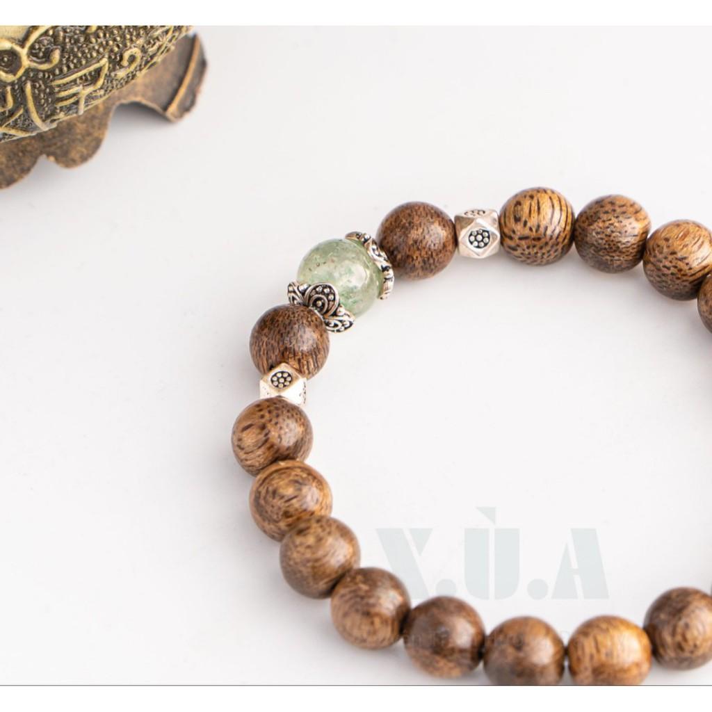 Vòng Tay Trầm Tốc Đính Charm Trắng, Loại 6mm, Cầu Bình An || May Mắn