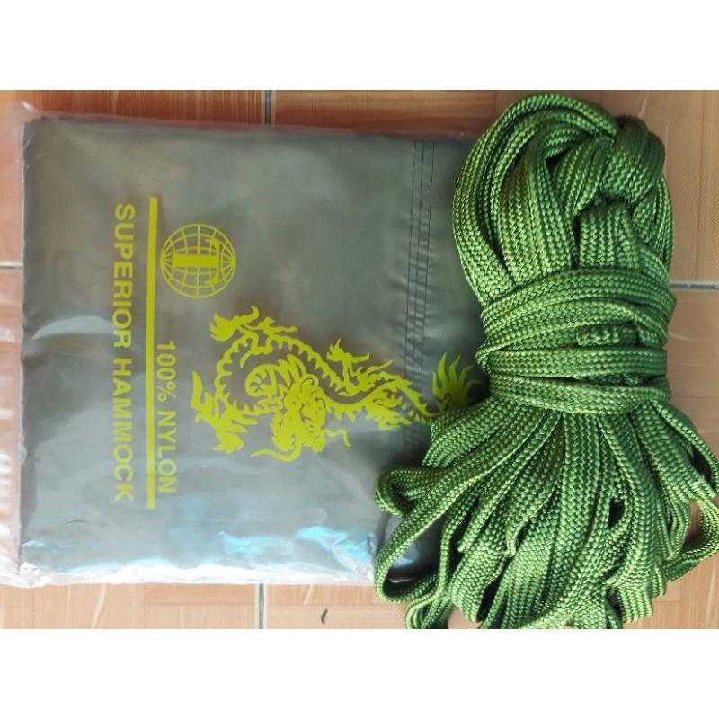 thông tin: + chiều dài: 240cm + chiều rộng: 140cm + Võng dù 2 lớp mềm, mịn, dày. Nằm rất thoải mái, mát và rất chắc chắn. + có thể dùng võng như một miếng bạt để che nắng, che m...