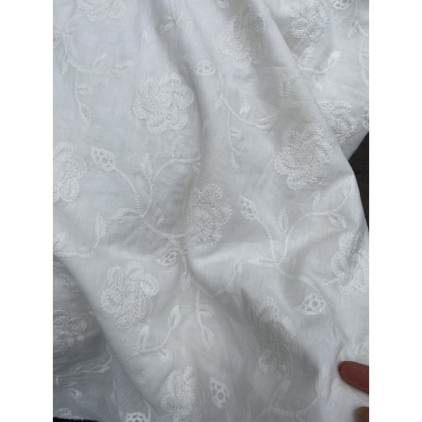 Thô boi trắng đẹp thêu hoa nhí các c ơi Hàng này lên váy áo xinh lắm ý Nhẹ nhàng tình cảm May đc cho cả người lớn trẻ em mà ko bh sợ lỗi mốt hết Vải khổ 1.45m Em đang sẵn lẻ ah Ce làm hàng thì ib em báo giá nha. Thô boi thêu cherry đỏ em mới về Đúng hôm lên lever F0 thế là hnay em mới khoe được. 😃 Vải lẻ 70k/mét thôi các c ợ. Thêu em chụp xa chụp gần rồi đới Boi nên chất mỏng mát may váy thì phải lót nha. Áo thì ai thích kín đáo hẳn thì may lót cho kín đáo còn ko thì may 1 lớp cũng ok. các loại khác tuỳ mẫu khổ vải khác nhau ạh