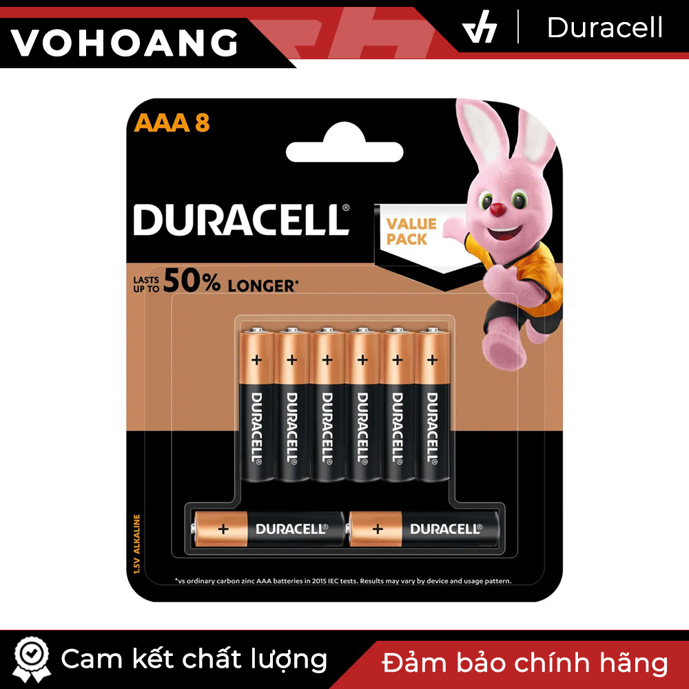 Vỉ 8 pin AAA Duracell Coppertop dung lượng cao chính hãng