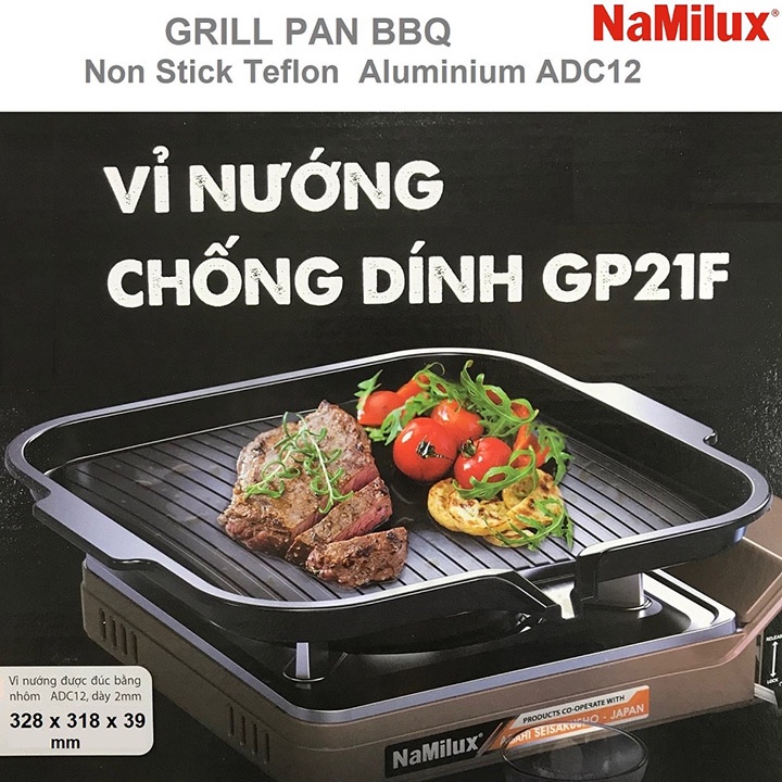 Vỉ nướng Khay nướng BBQ nhôm chống dính Namilux 21PF telfon Cao Cấp