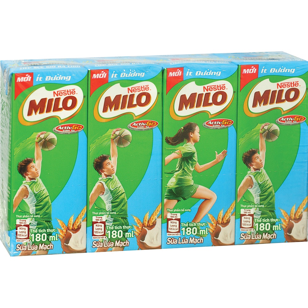 Vỉ sữa lúa mạch MILO ít đường 4hộp x 180ml