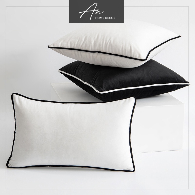 An Home Decor l Vỏ bao gối tựa Sofa văn phòng đen trắng viền lé (Chỉ gồm vỏ gối không ruột) 🍀 THÔNG SỐ KỸ THUẬT: ⚡ Kích thước: 45x45cm, 50x50cm, 30x50cm 🍀 CÔNG DỤNG: ⚡Màu sắc tươi sáng sẽ không bao giờ phai, thay đổi diện mạo căn phòng của bạn. ⚡Khóa kéo bảo vệ lõi