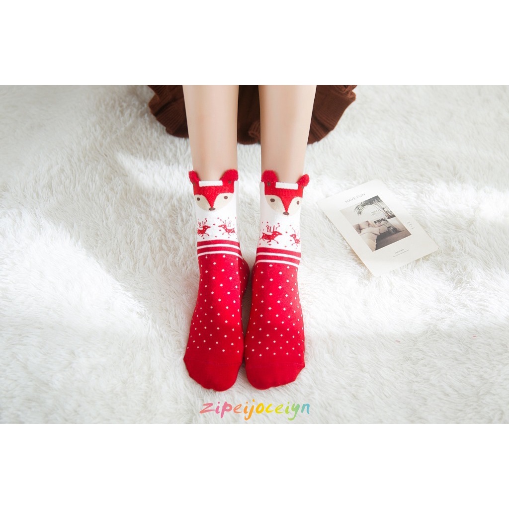 Vớ Cotton Cổ Vừa Họa Tiết Giáng Sinh Hoạt Hình Phong Cách Nhật Bản Dễ Thương Cho Nữ