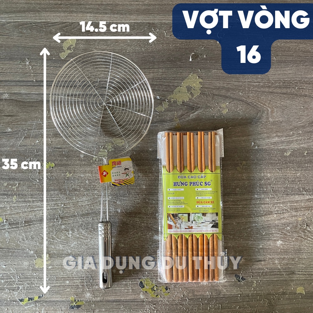 Vợt chiên inox vớt ráo dầu cán dài có móc treo tiện lợi - Vợt vòng cán inox vớt thức ăn lẩu chiên 5 size KNY