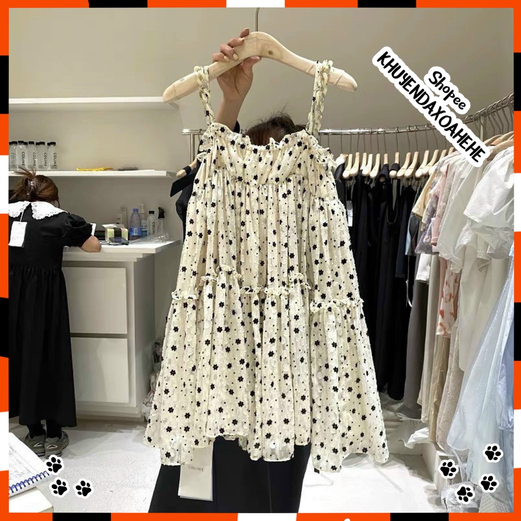 V003 Váy 2 dây Babydoll BBD trắng hoa nhí đen nhún ngực đáng yêu dáng lỡ đầm tiểu thư công chúa ulzzang nữ tính cute