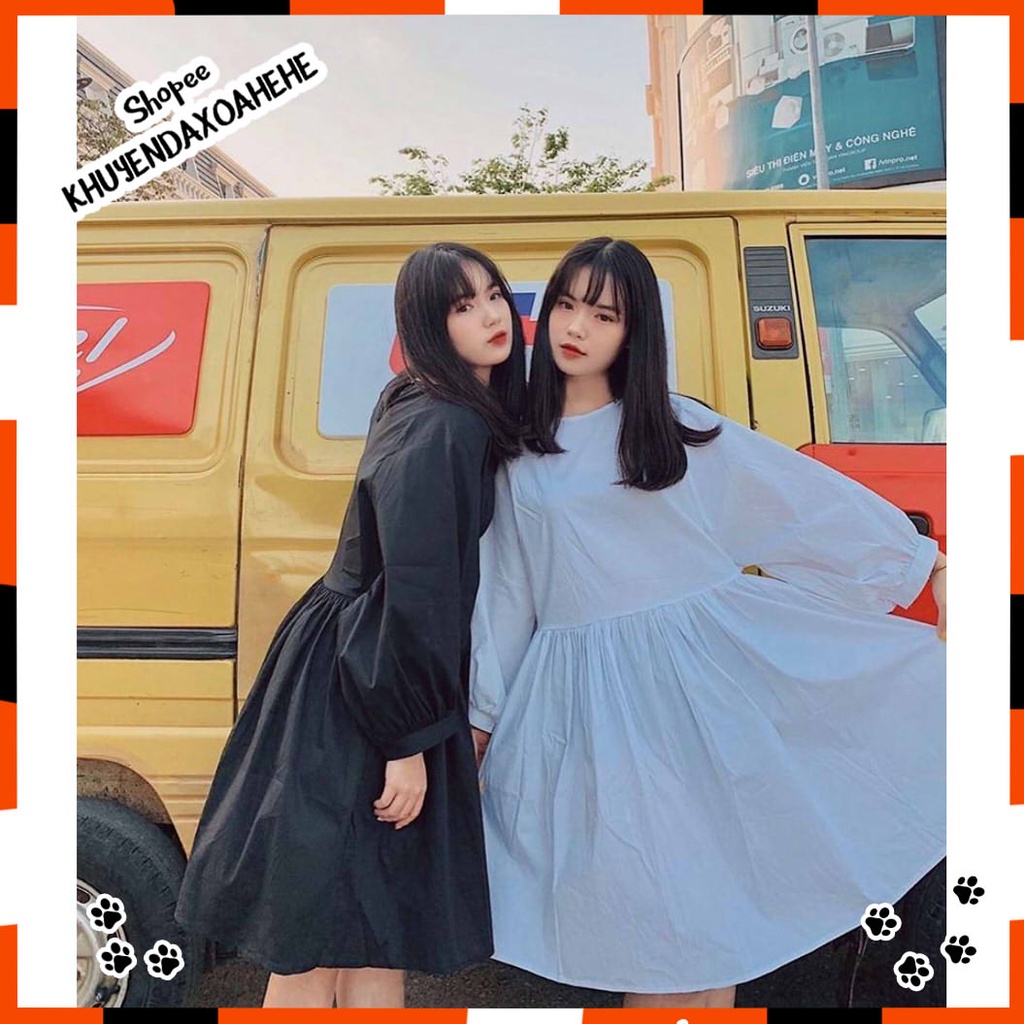 V007 Váy Babydoll trắng trơn tay bồng chụp ảnh đầm bầu baby doll tay phồng form rộng cute dễ thương