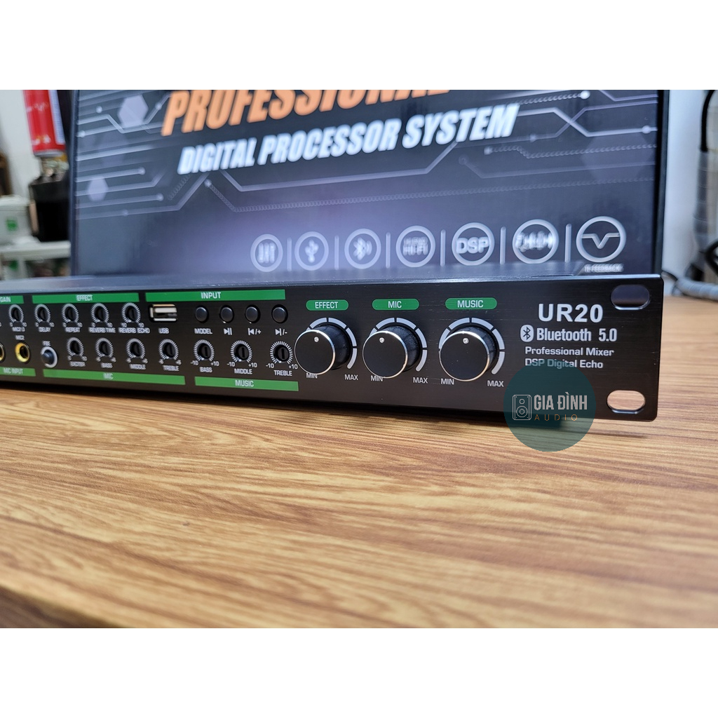 Tên sản phẩm: Vang cơ lai số JBL UR20 *Phụ kiện bao gồm - 1 dây nguồn - 1 remote điều khiển *Mô tả - Vang cơ JBL UR20 là dòng sản phẩm cơ lai số, chỉnh cơ nhưng xử lý tín hiệu bằng chip nhớ, có hiện thông số lên màn hình lớn và remote điều khiển từ xa. *Thông số kỹ thuật - Chất liệu: Nhôm phay nguyên chất - Nguồn: AC220 -240V 50Hz - Cổng ra âm thanh: SUB, Center, ML, MR - Hỗ trợ đầu vào: Bluetooth, optical, AUX, Coxial - Hỗ trợ khác: Chống hú FBE, Reverb time, reverb Echo - Bass:±6dB (100Hz) - Mid: ±3dB(1kHz) - Treble: ±10dB(10kHz) - Effect: DOUBLE ECHOOUTPUT LEVEL: 2.8v/1kΩ - VOLTAGE: AC 18VX2 800mA - Kích cỡ(mm): 483(Rộng) x 44(Cao) x 157(Sâu) - Cân nặng: ~3,0 kg *Tính năng - Mặt trước có màn hình LCD lớn hiển thị các thông số khi hoạt động. Nút FBX chống hú, người dùng có thể điều chỉnh bằng tay dễ dàng, nút thay đổi nguồn nhạc Exciter - Vang cơ UR20 PRO có khả năng tùy chỉnh bằng tay và bằng phần mềm trên máy tính đều cho hiệu quả chỉnh âm tốt. Chỉnh echo và reverb riêng, tiếng echo và reverb rất bay, hát nhẹ - JBL UR20 PRO có hiệu ứng hát chuyên biệt chất lượng cao, chức năng xử lý âm thanh hoàn chỉnh và cân bằng thông số kỹ thuật số đầy đủ. 8 chế độ effect. Chỉnh treble, mid, bass riêng biệt của Mic, nhạc. - Đặc biệt là 2 chế độ làm nên tên tuổi của UR20 là Reverb time, Reverb Echo là 2 chức năng chỉ có trên dòng vang cơ lai số UR20 này. Giúp tiếng ca bay bổng, trong trẻo nhất. - Tích hợp chức năng triệt tiêu phản hồi (feedback), 3 chế độ chống hú và công nghệ chống ồn chuyên nghiệp, giúp cho âm thanh sáng – trong không bị hú rít. - Trang bị kết nối Bluetooth chuẩn aptX, tốc độ truyền dẫn tín hiệu ổn định, khôi phục âm thanh ở mức độ sạch tiếng, đầy đặn và tinh tế. Bạn có thể sử dụng nguồn nhạc từ các thiết bị di động như smartphone, tablet, laptop,… *Tình trạng: Mới 100% - Thời gian bảo hành: 12 Tháng - Bảo hành theo tem - Gia Đình Audio chuyên cung cấp thiết bị âm thanh - Địa chỉ: 76/26 Đường HT35, Hiệp Thành, Q12, HCM - SĐT: 0975157039 #vang #vangcolaiso #vangjblur20 #vangcolaisojbl #vangcolaisochinhhang #vangcolaisojblur20 #jblur20 #vangcolaisojblur20 #vangcolaisocaocap