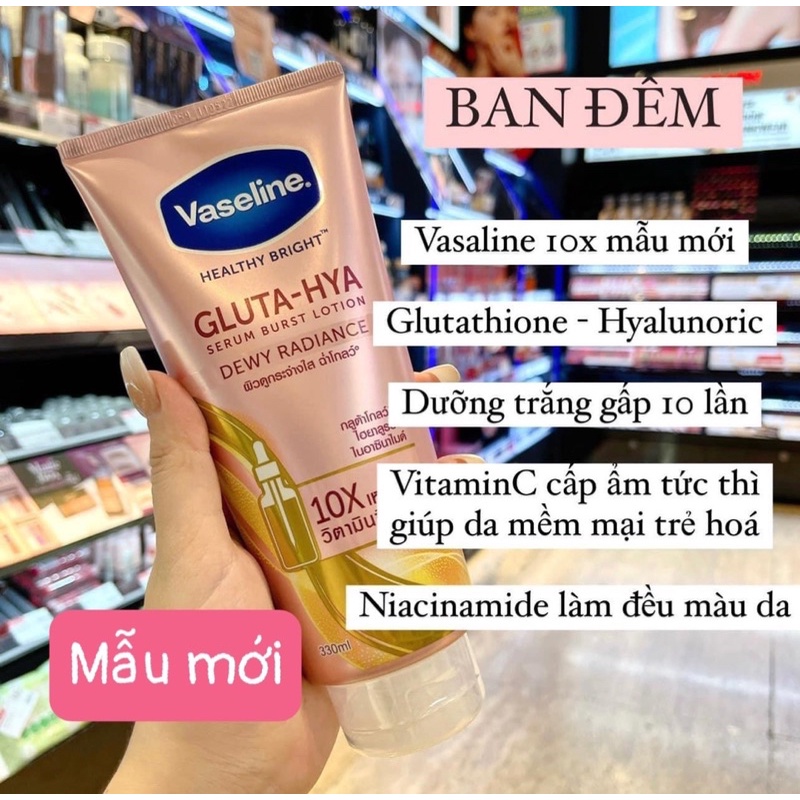 Vaseline Dưỡng Thể Healthy Bright GLUTA-HYA Serum Burst Lotion Hồng Ban đêm Bản mới nhất 300ml
