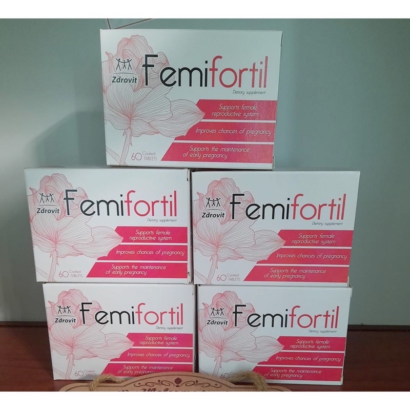 ** Thực phẩm này không phải là thuốc,không có tác dụng thay thế thuốc chữa bệnh. ** • Bảo vệ thai nhi và giảm dị tật ống thần kinh thai nhi suốt thời điểm đầu thai kỳ. Femifortil giúp hỗ trợ ngăn ngừa suy buồng trứng sớm, tăng khả năng thụ thai, hỗ trợ và bảo vệ thai nhi thời kì đầu thai kì. Sản phẩm được sản xuất tại Ba Lan, được Bộ Y tế Ba Lan chứng nhận đạt tiêu chuẩn GMP. THÀNH PHẦN Femifortil có chứa vitamin và khoáng chất chống oxy hóa giúp bổ trứng, tăng chất lượng nang noãn, giúp tăng khả năng thụ thai, bảo vệ thai nhi trong thời kỳ đầu của thai kỳ. – Vitex Agnus: tăng cường khả năng sinh sản của phụ nữ do kích thích các hormone liên quan đến phóng noãn, cân bằng nồng độ progesterone-estrogen, đặc biệt duy trì nồng độ progesterone trong giai đoạn hoàng thể, kéo dài giai đoạn hoàng thể, chống suy sớm buồng trứng. – Trà xanh: chống oxy hoá, bảo vệ nang noãn, bảo vệ phôi thai, giảm nguy cơ sảy thai. – Selenium, Vitamin E, Vitamin C: chất chống oxy hóa mạnh, làm sạch các gốc oxy hóa tự do, ngăn ngừa tổn thương buồng trứng, tăng khả năng thụ thai, có tác dụng quan trọng trong duy trì sự phát triển của nang noãn. – Acid Folic: giảm dị tật ống thần kinh. – Vitamin B6, B12: cân bằng nồng độ hormon, tăng phóng noãn, cải thiện niêm mạc tử cung. Kết hợp với Acid Folic làm tăng khả năng thụ thai. – Kẽm: tăng khả năng sinh sản, hỗ trợ thai nhi phát triển khỏe mạnh. CÔNG DỤNG – Femifortil giúp cải thiện chất lượng nang noãn, trứng phát triển đều, đẹp sẽ dễ thụ thai hơn, phôi thai hình thành sẽ phát triển khỏe mạnh hơn. – Giúp điều hòa nội tiết tốt, hỗ trợ điều hòa kinh nguyệt, cải thiện niêm mạc trong giai đoạn mang thai. – Giảm nguy cơ suy hoàng thể, kích thích sản sinh ra progesterone giúp dưỡng thai trong quá trình mang thai, giảm nguy cơ lưu thai do suy hoàng thể, giảm hiện tượng bong rau thai. Do đó ngoài chỉ định cho bệnh nhân đang chuẩn bị mang thai thì sản phẩm còn được dùng cho phụ nữ mang thai, đặc biệt là giai đoạn đầu thai kỳ. – Cung cấp Acid Folic giúp giảm nguy cơ mắc dị tật ống thần kinh, nứt đốt sống – Cung cấp nhiều chất chống oxy hóa giúp bảo vệ các tế bào trứng, các cơ quan, bộ phận trong cơ thể khỏi tác động xấu của các gốc tự do trong cơ thể. – Cung cấp dưỡng chất cần thiết cho tế bào trứng phát triển, sử dụng tốt cho bệnh nhân buồng trứng đa nang. CÁCH DÙNG – Uống 1-3 viên/ngày, sau bữa ăn 15 – 20 phút (Nếu dùng 1 viên: ưu tiên uống sáng hoặc trưa, 2 viên: uống sáng và tối, 3 viên: uống sáng, trưa, tối sau ăn). – Nên sử dụng Femifortil vào một khung giờ cố định trong ngày. CHÚ Ý – Sản phẩm cho tác dụng tốt nhất khi sử dụng 3-6 tháng trước khi mang thai/làm IUI, IVF – Khi sử dụng cần kết hợp ăn uống điều độ, kiêng rượu, bia, chất kích thích, hạn chế thức khuya – SẢN PHẨM NÀY KHÔNG PHẢI LÀ THUỐC VÀ KHÔNG CÓ TÁC DỤNG THAY THẾ THUỐC CHỮA BỆNH