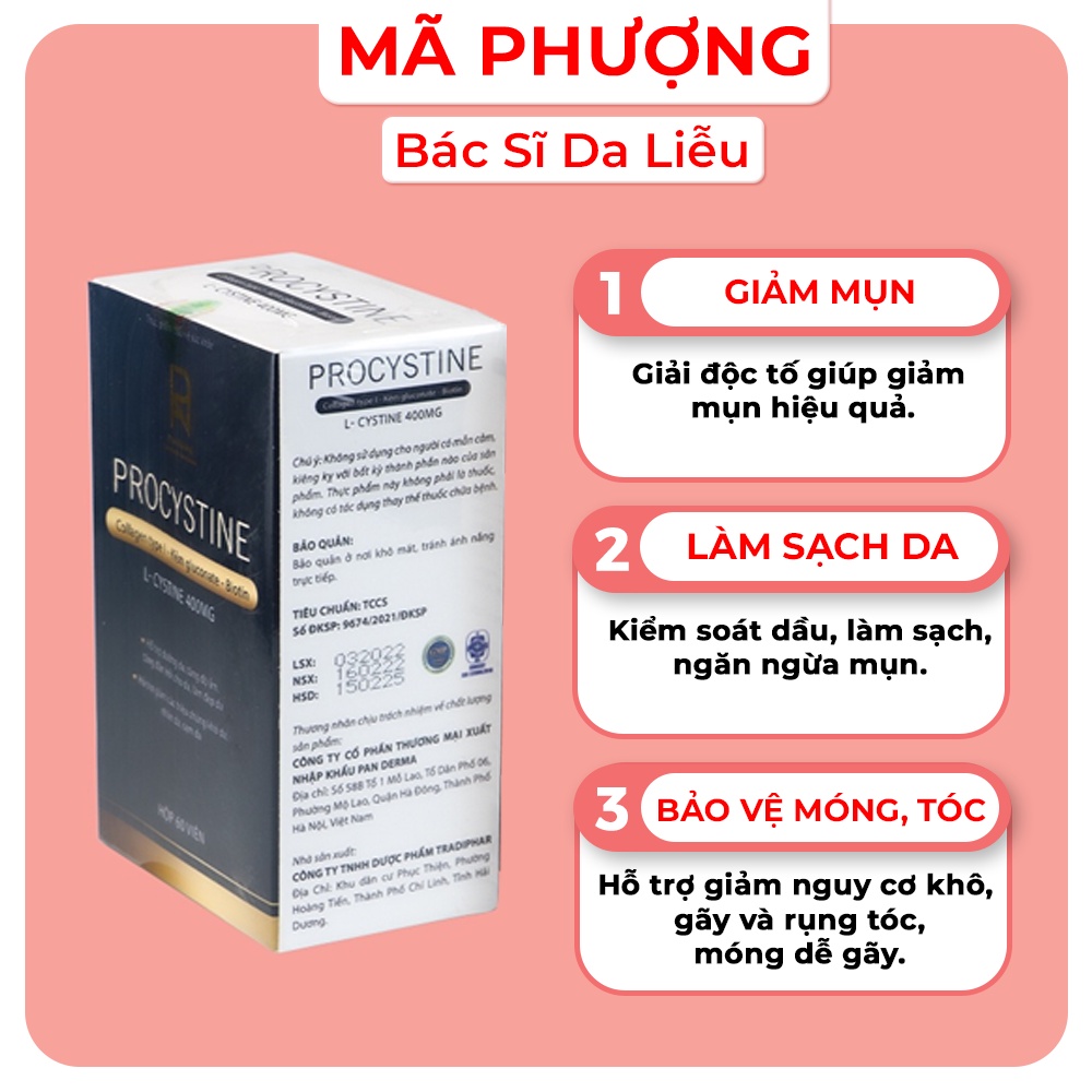 Viên uống giảm mụn trắng da Procystine 60 viên - Hàng chính hãng - Dược mỹ phẩm bác sĩ Mã Phượng