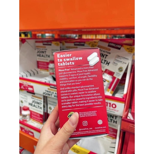 Thông tin sản phẩm Đóng gói: Hộp 200 viên Sản xuất tại: Mỹ Thành phần chính: xem trên bao bì sản phẩm. Cách dung: Uống 2 viên/ngày sau khi ăn Đối tượng: người trưởng thành Công Dụng: - Bồi bổ, tăng cường sự chắc khỏe cho xương khớp. - Hỗ trợ quá trình vận động, di chuyển được linh hoạt hơn. - Hỗ trợ bồi bổ, tăng cường sức khỏe cho người trưởng thành. Bảo quản: Nơi khô ráo thoáng mát, tránh xa tầm tay trẻ em. ❌ Lưu ý khi sử dụng: - Với phụ nữ mang thai và cho con bú nên tham khảo ý kiến của bác sĩ trước khi sử dụng. lưu ý: sản phẩm không phải là thuốc, không thay thế thuốc chữa bệnh #movefree