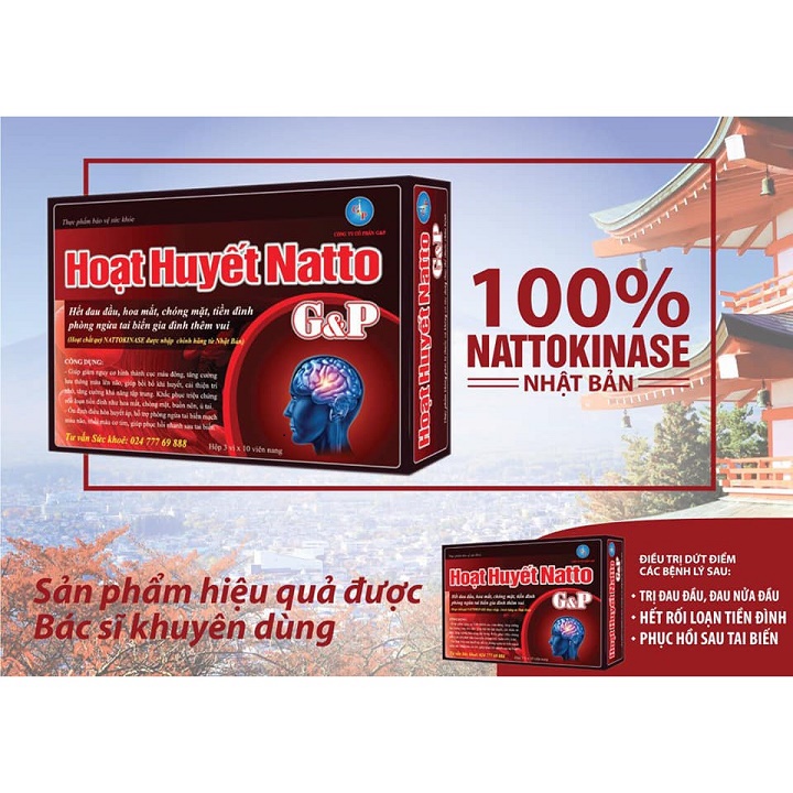 Viên uống hoạt huyết Natto G&P -Giúp giảm đau đầu , hoa mắt , chóng mặt , rối loạn tiền đình - hộp 30 viên