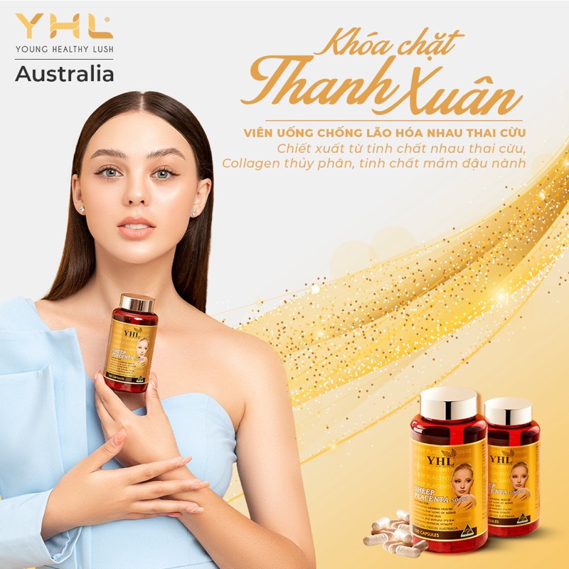 VIÊN UỐNG NHAU THAI CỪU YHL là sản phẩm cao cấp được sản xuất tại Úc, chứa hàm lượng nhau thai cừu lên đến 50.000mg – cao gấp nhiều lần so với các sản phẩm nhau thai cừu thông thường trên thị trường, mang đến giải pháp ngăn ngừa lão hóa toàn diện cho phụ nữ, gồm: Giảm