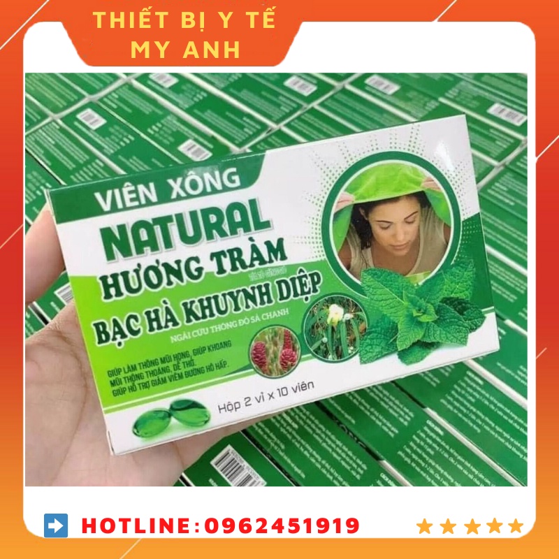 Khách hàng hoàn toàn yên tâm khi mua sản phẩm với CAM KẾT ✅ Hàng chính hãng 100% ✅ Các sản phẩm của shop luôn theo đúng tiêu chuẩn với chất lượng,cam kết hàng giống hình 100%. ✅ Giá cả hợp lý, cạnh tranh. ✅ Đáp ứng mọi yêu cầu của khách hàng trong thời gian ngắn nhất ✅ Đảm bảo về số lượng đúng chủng loại và màu sắc khách đặt ✅ Mọi chi tiết liên hệ HOTLINE 0962451919 để được tư vấn và hỗ trợ Viên xông hương tràm Thành phần Viên xông hương tràm NaTURAL Dầu lạc dược dụng 200mg Natri benzoate 0,6mg Gelatin 60mg Nước cất 72 mg Màu xanh 0,025mg Sorbitol 12,5mg VIÊN XÔNG HƯƠNG TRÀM SẢN PHẨM TIỆN ÍCH Viên xông hương tràm là sản phẩm được sản xuất tại Việt Nam, có thể thay thế các loại lá xông, gọn nhẹ và rất tiện lợi cho tủ thuốc gia đình mỗi khi nhà có người mỏi mệt khi lạnh. Viên xông được sản xuất từ tinh dầu thiên nhiên như tràm, bạc hà, long não giúp làm sạch không khí, làm dịu toàn thân, mệt mỏi, căng thẳng, cảm cúm, mũi họng, nơi ở, phòng làm việc, tắm hơi, phòng cúm, xông cho phụ nữ sau sinh, tăng cường sức khỏe và sauna Cách dùng viên xông rất tiện lợi: Có điều kiện thì dùng đèn xông hương, nến xông hương. Chỉ cần cho nước vào đĩa đựng tinh dầu, thả viên xông vào (hoặc bóp cho tinh dầu chảy vào) mở nhạc nhẹ, nằm thư giãn một lúc là cơ thể thoải mái, dễ chịu, giảm nhanh những cơn mệt mõi cơ thể. Nếu không có đèn, nến, có thể dùng ly nước nóng, thả 1-2 viên xông hương tràm vào và chờ bốc hơi là xông ngay được.