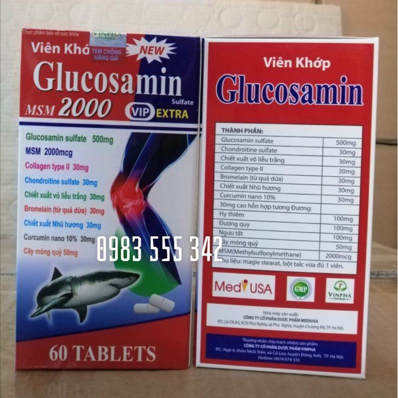 CÔNG DỤNG CỦA VIÊN XƯƠNG KHỚP GLUCOSAMIN MSM 2000 - Giúp tái tạo, phục hồi mô sụn khớp bị tổn thương. - Tăng chất nhờn, tăng tính linh hoạt của sụn khớp. - Giảm các triệu chứng đau nhức mỏi xương khớp. - Giảm quá trình thoái hóa xương khớp. - Mỗi ngày chỉ dùng 2 đến 3 viên, hiệu quả, tiết kiệm mà không gây nhờn thuốc. THÀNH PHẦN SẢN PHẨM GLUCOSAMIN MSM 2000 - Glucosamin, vỏ liễu trắng, Collagen Type 2, Nhũ hương, Cucurmin nano, Cao dược liệu khác ... HƯỚNG DẪN SỬ DỤNG VIÊN KHỚP GLUCOSAMIN MSM 2000 - Không dùng cho phụ nữ có thai và đang cho con bú, trẻ em dưới 12 tuổi. - Uống 1 viên duy nhất / lần, ngày 2 đến 3 lần sau các bữa ăn chính. (Cung cấp từ 1.000mg đến 1.500mg glucosamin mỗi ngày, liều lượng vừa đủ khuyên dùng). ĐỐI TƯỢNG SỬ DỤNG - Sử dụng cho người bị thoái hóa xương khớp, khô khớp, người bị chấn thương cơ khớp khi hoạt động thể thao, người cao tuổi. LƯU Ý KHI SỬ DỤNG VIÊN XƯƠNG KHỚP GLUCOSAMIN MSM 2000 - Hạn sử dụng 3 năm từ ngày sản xuất - Bảo quản nơi khô ráo thoáng mát, tránh ánh nắng trực tiếp. Để xa tầm tay trẻ em - Thực phẩm này không phải là thuốc và không có tác dụng thay thế thuốc chữa bệnh THÔNG TIN XUẤT XỨ - Sản xuất: CÔNG TY CỔ PHẦN DƯỢC PHẨM QUỐC TẾ STP. - Chịu trách nhiệm và phân phối sản phẩm: CÔNG TY CỔ PHẦN DƯỢC PHẨM VINPHA. - Sản phẩm được bán chính hãng tại gian hàng Bách Hóa Khỏe Đẹp VN. #GlucosaminMSM2000 #vienxuongkhop #vienkhop #giamdaunhucxuongkhop #shopgiare5