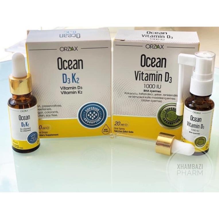 Vitamin Dạng Xịt Ocean D3K2 Hỗ Trợ Tăng Cường Hấp Thu Canxi Giúp Bé Phát Triển Vượt Trội Chai 20ml 💥THÔNG TIN SẢN PHẨM - Tên sản phẩm: Vitamin Dạng Xịt Ocean D3K2 - Thương hiệu: Orzax - Xuất xứ: Thổ Nhỹ Kỳ - Trọng lượng: Chai 20ml - Hạn sử dụng: 36 tháng kể từ ngày s