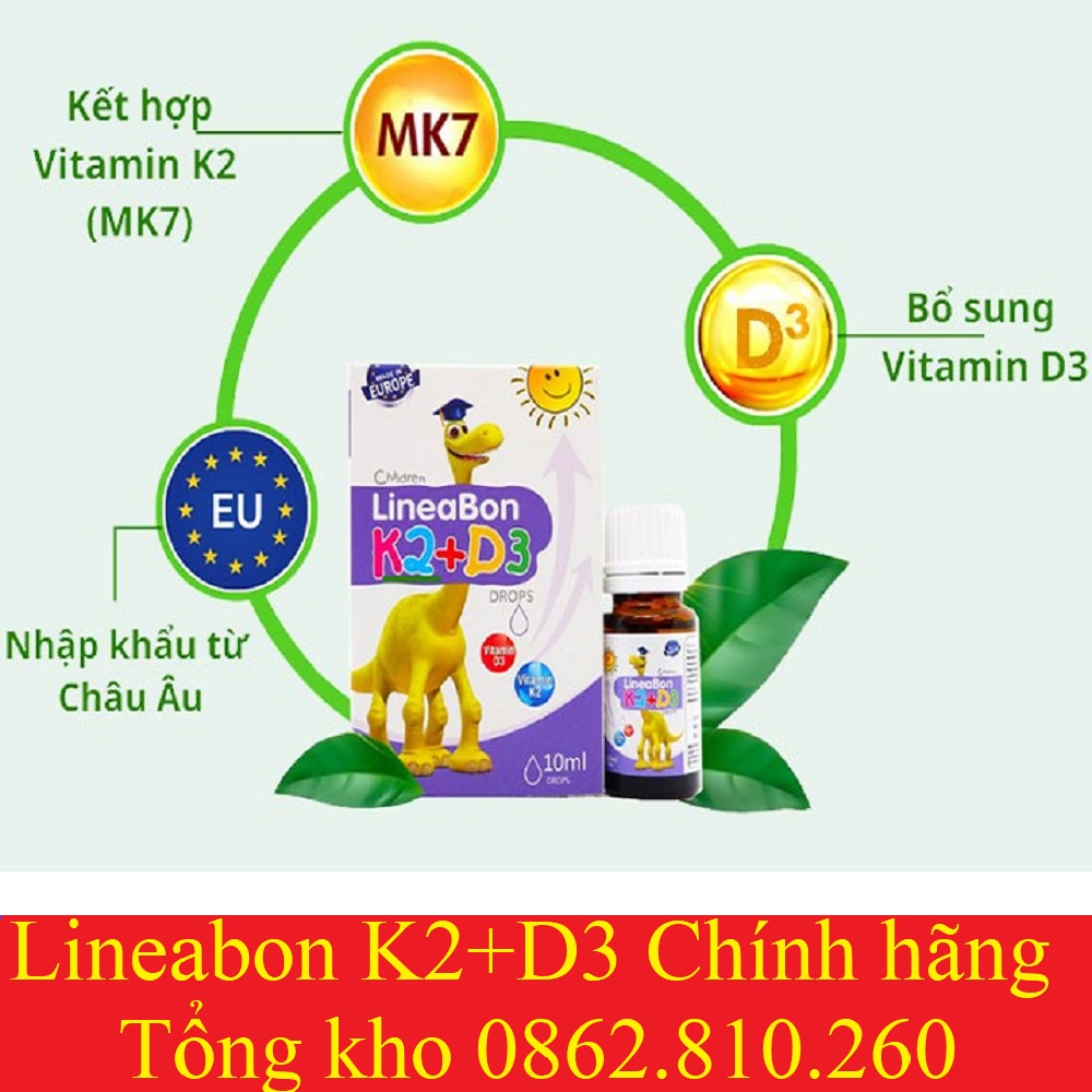 Vitamin K2D3 Lineabon K2+D3 hỗ trợ hấp thu canxi chai 10ml