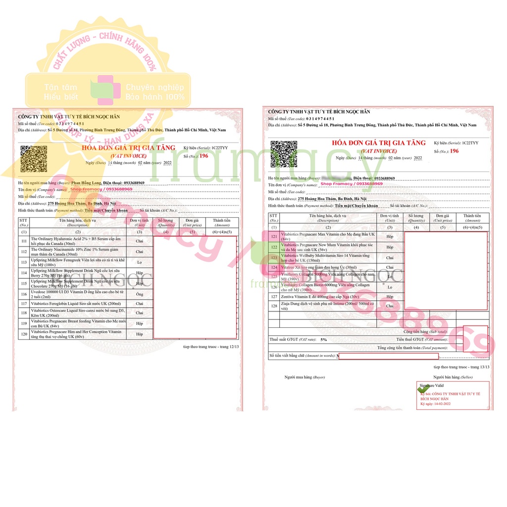 Một thực tế khá phổ biến hiện nay là ngày càng có nhiều cặp vợ chồng gặp khó khăn trong việc có con, hiếm muộn hơn do ảnh hưởng của môi trường sống đến tâm sinh lý. Vì vậy, ngoài chế độ sinh hoạt và ăn uống bình thường thì các loại thuốc hỗ trợ cho sức khỏe sinh sản có một vai trò rất quan trọng trong thực đơn hàng ngày của các cặp vợ chồng hiếm muộn. Hiểu được điều đó Vitabiotics từ Anh Quốc đã mang tới Pregnacare Him & Her Conception cung cấp các dưỡng chất cần thiết cho cơ thể, giúp quá trình thụ thai nhanh và dễ dàng hơn. 1. Thành phần: • Mỗi viên hồng chứa L-Arginine 100mg, Inositiol 50mg, N-Acetyl Cysteine 50mg, Betacarotene 3mg, các loại vitamin B1, B2, B3, B6, B12, C, D, E, FolicAcid, Biotin 150µg, Pantothenic Acid 6mg, ma-giê 60mg, sắt 14mg, kẽm 15mg, đồng 1000µg, Selenium 50µg, iốt 150µg • Mỗi viên tím chứa Siberian Ginseng 30mg, Peruvian Maca 250mg, Co-enzyme Q10 2mg, L-Carnitine 50mg, Citrus Bio flavonoids 10mg, L-Arginine 10mg, LycopeneExtract 1.5mg, PineBarkExtract 30mg, Octacosanol 3mg, Insonitol 40mg, L-Glutathione 2.5mg, các loại vitamin A, B1, B2, B6, B12, C, D3, E, Folic Acid 400µg, Biotin 150µg, Pantothenic Acid 10mg, ma-giê 60mg, sắt 6mg, kẽm 15mg, đồng 1000µg, mangan 0.5mg, Selenium 150µg, Chromium 50µg 2. Công dụng: • Cung cấp dưỡng chất tăng cường sức khỏe sinh sản • Bảo vệ tận gốc gen di truyền trước nguy cơ bị khiếm khuyết, dị tật • Ổn định nội tiết, điều hòa kinh nguyệt • Duy trì chức năng của buồng trứng và khả năng sinh sản, chống oxy hóa, bảo vệ trứng, tăng chất lượng trứng • Làm giảm đau bụng kinh nguyệt, hoặc các chứng khó chịu trong ngày đèn đỏ cho nữ • Hỗ trợ sức khỏe tinh trùng, chống oxy hóa, bảo vệ tinh trùng trước tác động của gốc tự do, bổ sung khoáng chất, kẽm và acid amin cần thiết để duy trì chức năng sinh sản nam, tăng cường ham muốn, sinh lý nam, phòng ngừa nguy cơ ung thư tuyến tiền liệt, duy trì sức khỏe tổng thể của nam giới 3. Hướng dẫn cách dùng: • Uống 1 viên/ngày sau bữa ăn chính, nam uống viên tím, nữ uống viên hồng 4. Đối tượng sử dụng: • Cặp vợ chồng mới cưới, muốn sinh con 5. Lưu ý: • Tuân thủ đúng liều lượng khuyến cáo, bảo quản nơi khô ráo, tránh nhiệt cao, ánh nắng trực tiếp • Uống bổ sung trước khi muốn có con từ 3-6 tháng, ngừng khi đã có thai 6. Mua Vitamin tăng thụ thai Pregnacare Him & Her ở đâu chính hãng? • Framacy chuyên bán sỉ và lẻ các sản phẩm chăm sóc sức khỏe 100% chính hãng với đủ hóa đơn, giấy tờ, nếu không đúng cam kết đền 100% đơn hàng. Hàng chúng tôi có hạn sử dụng xa, chất lượng, giá hợp lý. Đội ngũ tư vấn và phục vụ tận tâm, hiểu biết, chuyên nghiệp • Địa chỉ: 267 Hoàng Hoa Thám, Ba Đình, Hà Nội • Hotline: +84 933 688 969 (Zalo bán buôn, bán lẻ) • Rất nhiều sản phẩm và thông tin bị hạn chế đăng tải trên Shopee nên mời bạn liên hệ Zalo và truy cập www.framacy.com hay www.facebook.com/framacy.online để có thêm nhiều thông tin và được tư vấn trực tiếp nhé ------------- Lưu ý: Sản phẩm không phải là thuốc, không có tác dụng thay thế thuốc chữa bệnh
