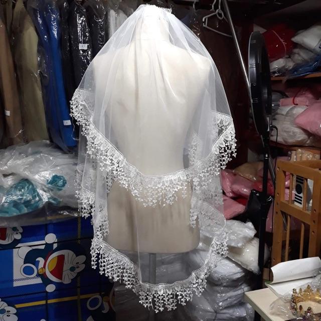 Voan cài tóc cô dâu - phụ kiện cưới Giang - voan ngắn tua rua mẫu 2