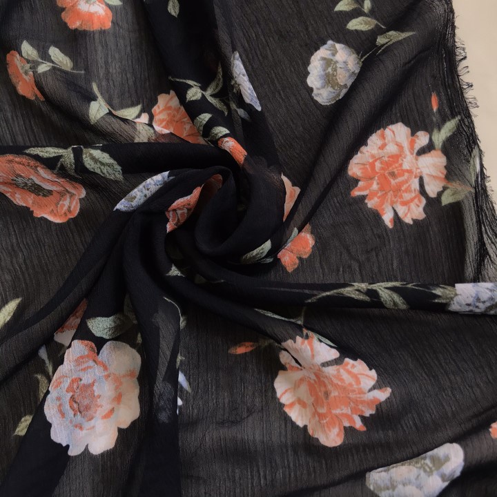 Voan Gân Đen Hoa Khổ 1m55 - Co Giãn, Mỏng, Nhẹ - May Áo Dài, Đầm, Váy, Áo Kiểu Cần Lót