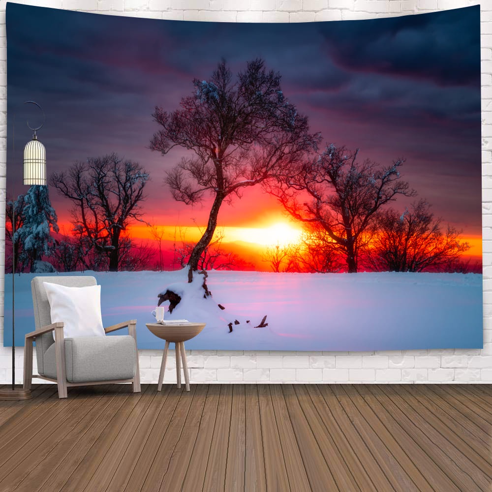 W Tranh Vải Treo Tường Trang Trí Phông Nền tv / Phòng Khách Hình Sông Núi Tuyết Mùa Đông Kiểu Bắc Âu