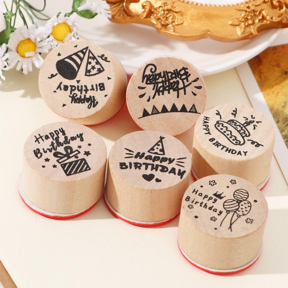 WAPKTY Set 6 Con Dấu Gỗ In Chữ happy birthday Trang Trí Sổ Tay