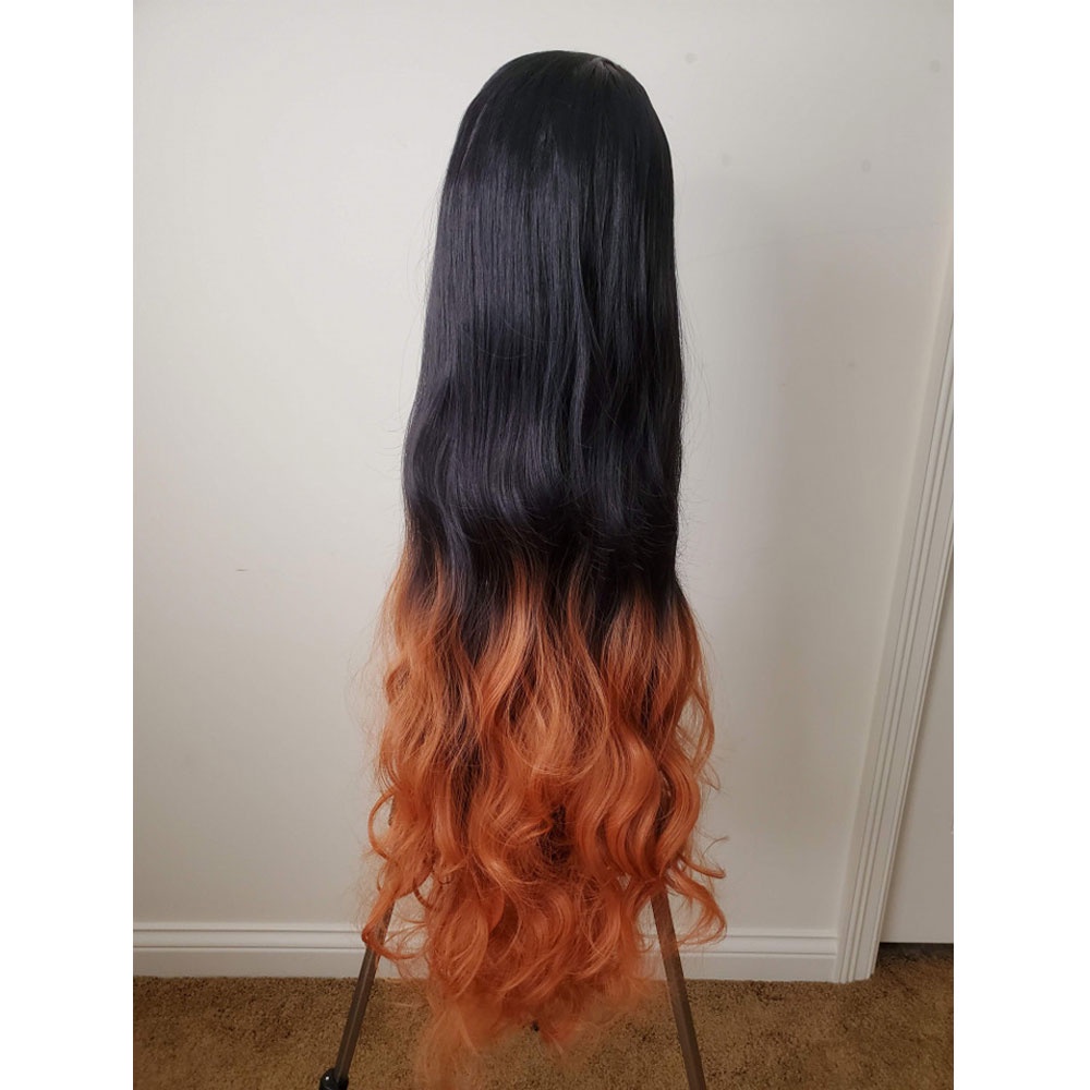 Wig/tóc giả cosplay Nezuko - Demon Slayer: Kimetsu no Yaiba màu đen pha cam
