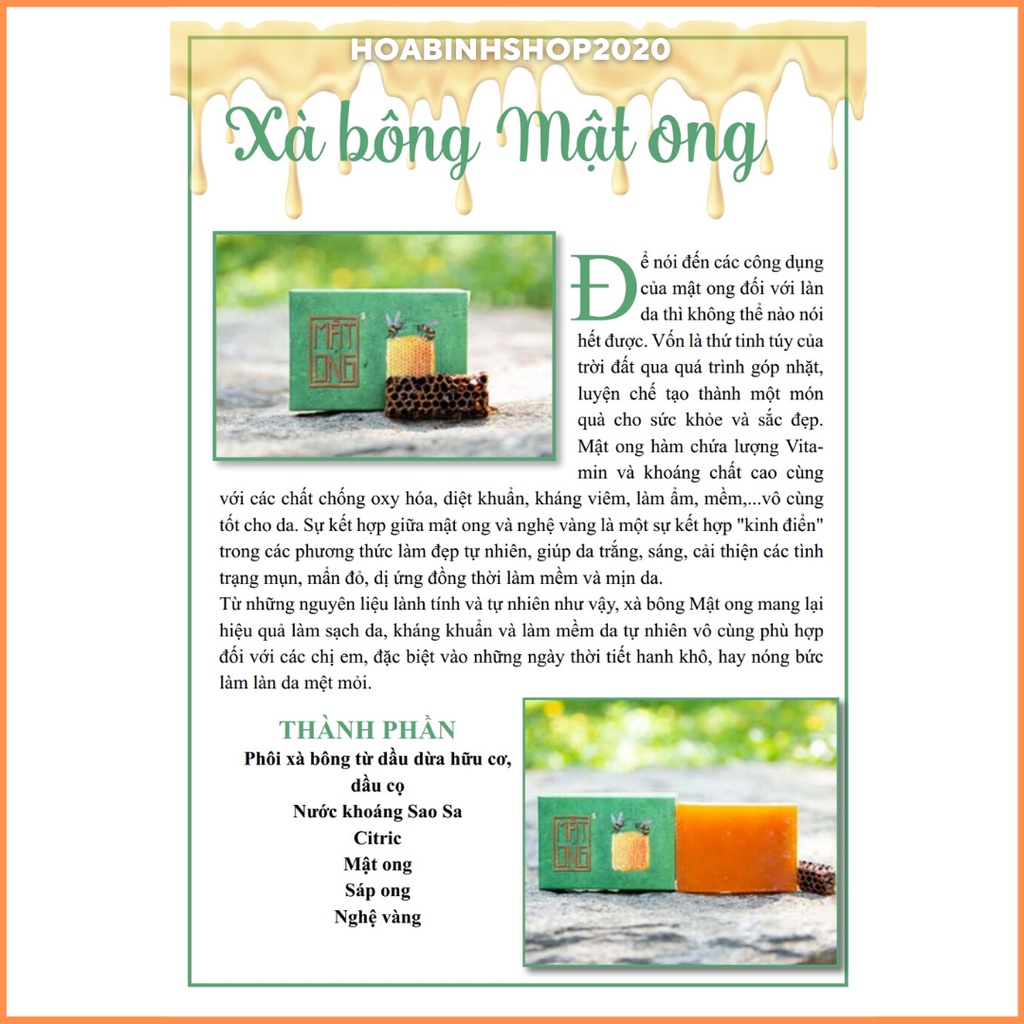 Xà Bông Mật Ong HTX Sinh Dược 100g 🍯 Chọn lọc những tinh túy từ thiên nhiên, HTX Sinh Dược tạo ra những bánh xà bông không hóa chất, dịu nhẹ và lành tính. 🍯 Xà Bông Mật Ong HTX Sinh Dược là sản phẩm từ thiên nhiên giúp làm sạch sâu, dưỡng da mềm mịn, 🍯 Mật ong giúp