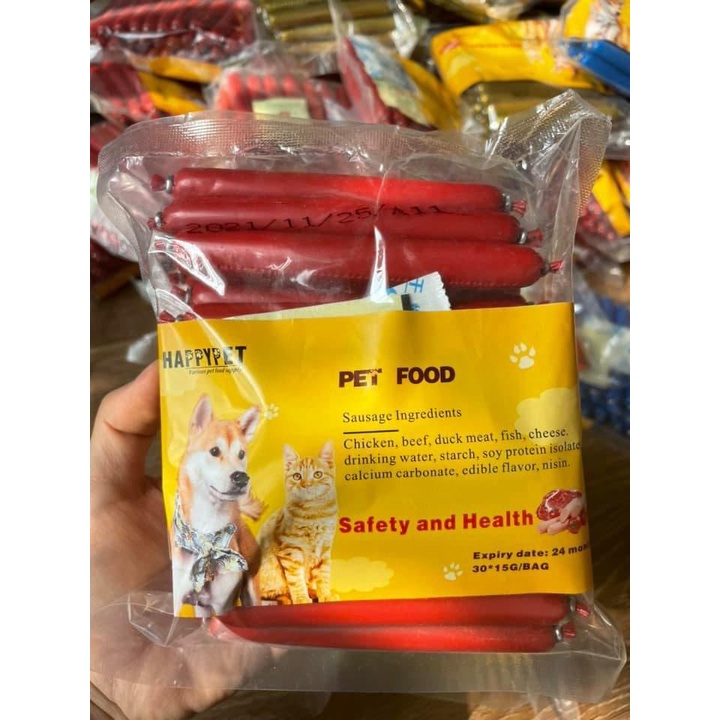 Xúc Xích cho chó mèo thú cưng chứa Vitamin & khoáng chất cho cơ thể những thú cưng luôn khỏe mạnh, linh hoạt. Xúc Xích cũng giống như những loại thức ăn cho chó mèo- thú cưng khác chứa Chất xơ cho hệ thống tiêu hóa tốt, tăng cường khả năng hấp thu chất dinh dưỡng, g