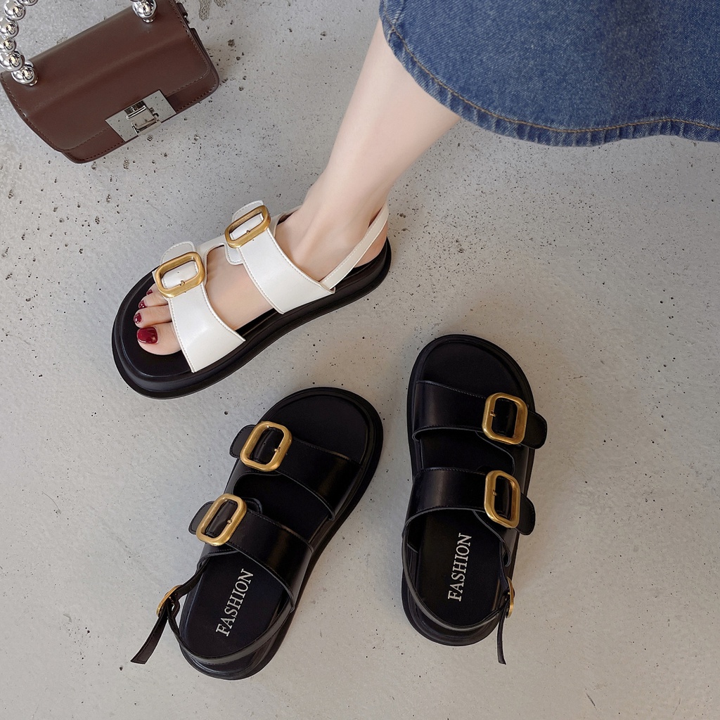 Xăng đan muffin nữ khuy quai gài 2022 phong cách La Mã hai màu đen trắng