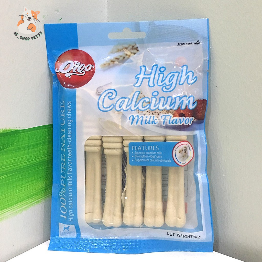 Xương Orgo gói 90g gặm sạch răng, bổ xung năng lượng, canxi cho chó. Thông tin sản phẩm: Có 4 hương vị: - Thịt bò: Chứa các thành phần thịt bò tự nhiên bổ sung dinh dưỡng và năng lượng, cấu trúc xương giúp loại bỏ mảng bám. - Sữa: Các thành phần sữa bò tự nhiên tă