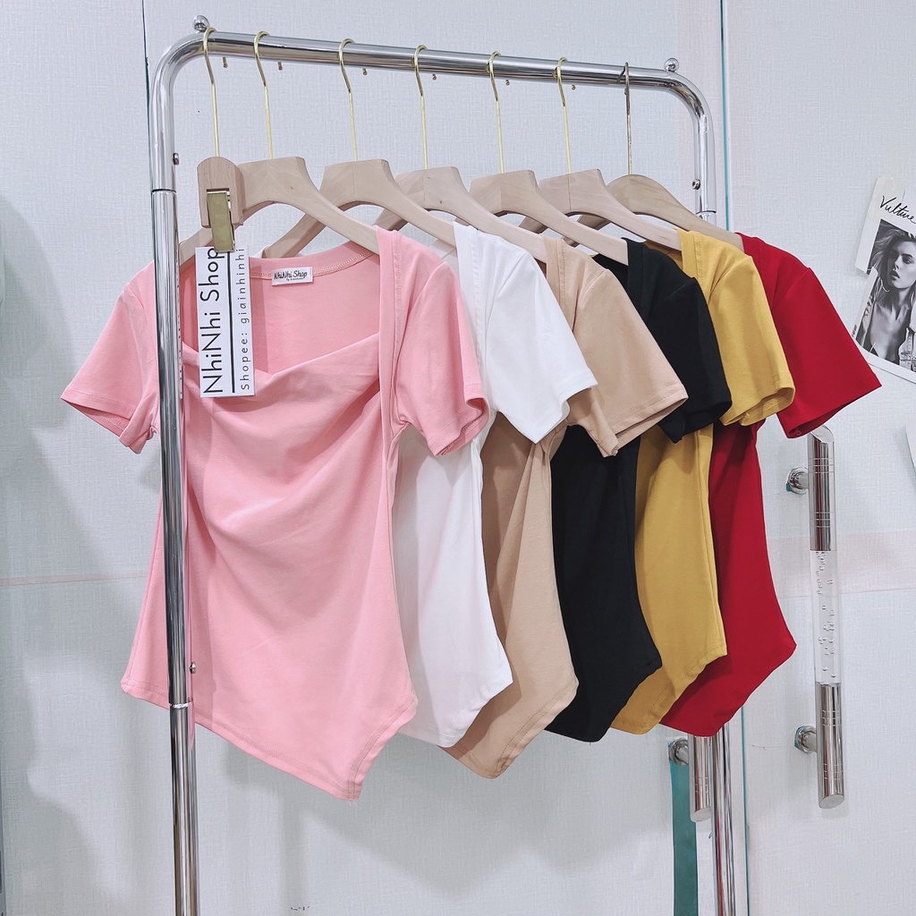 Xả hàng - Áo thun kiểu cổ vuông vạt nhọn ngắn tay dáng ôm sexxy CS5521 - NhiNhi Shop