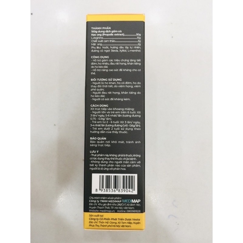 MAXIBEE- Xịt họng keo ong. 1. THÀNH PHẦN: - Keo ong, L-Arginine, chiết xuất cam thảo, mật ong. - Phụ liệu: nước, hương dâu tây tự nhiên, đường cỏ ngọt Stevia, Xylitol, L-menthol. 2. CÔNG DỤNG: - Hỗ trợ giảm các triệu chứng tăng tiết đờm, ho nhiều, đau rát họng, khản tiếng do ho kéo dài. - Hỗ trợ nâng cao sức đề kháng cho cơ thể. 3. ĐỐI TƯỢNG SỬ DỤNG: - Người bị ho khan, ho có đờm, ho do thay đổi thời tiết, do viêm họng, viêm phế quản. - Người đau rát họng, khản tiếng do ho kéo dài. - Người có sức đề kháng kém. 4. CÁCH DÙNG: - Xịt trực tiếp vào khoang miệng. - Người lớn và trẻ em trên 6 tuổi: xịt 3 lần/ngày, 5-6 nhát/lần (tương đương 0,75-0,9g/lần). - Trẻ từ 2-6 tuổi: xịt 3 lần/ngày, 3-4 nhát/lần (tương đương 0,45-0,6g/lần). - Trẻ dưới 2 tuổi sử dụng theo hướng dẫn của thầy thuốc. 5. LƯU Ý: - Thực phẩm này không phải là thuốc và không có tác dụng thay thế thuốc chữa bệnh. - Không sử dụng cho người mẫn cảm với bất kỳ thành phần nào của sản phẩm, người bị dị ứng với phấn hoa. ĐÓNG GÓI: Lọ 20ml HaiHa Pharmacy XIN CAM KẾT: - Chúng tôi chỉ bán hàng chính hãng , đạt chuẩn về chất lượng và an toàn,với phương châm đặt sức khỏe của khách hàng lên trên hết - Với kinh nghiệm 3 năm làm nhà thuốc, chúng tôi còn rất non trẻ, nhưng chúng tôi cam đoan sẽ dùng vốn hết vốn hiểu biết của mình để tìm những sản phẩm chất lượng nhất đến tay khách hàng - Hai Ha Pharmacy luôn sẵn sàng giải đáp mọi thắc mắc của quý khách về sản phẩm, mọi vấn đề xin vui lòng chat với shop hoặc gọi 0969577975 để được tư vấn và hỗ trợ đổi trả sản phẩm theo chính sách của Shoppe - Hai Ha Pharmacy xin cảm ơn quý khách đã tin tưởng và sử dụng sản phẩm của chúng tôi, chúng tôi sẽ không ngừng học hỏi tìm tòi mang lại những sản phẩm tốt nhất tới tay khách hàng