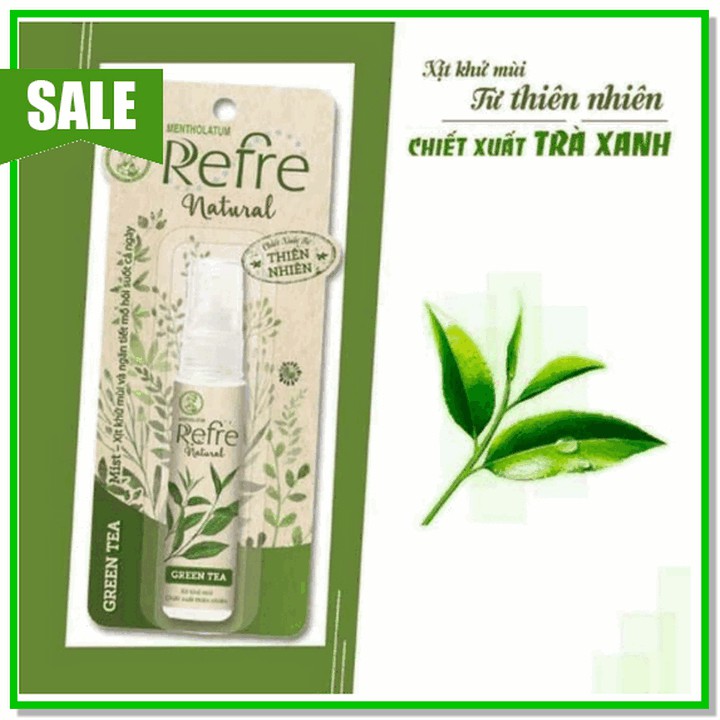 Xịt khử mùi, hương trà xanh, Xịt khử mùi Refre Whitening/Natural 6ml