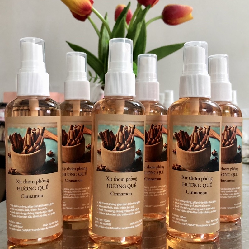 Chai xịt thơm phòng, quần áo, chăn màn với hương thơm tinh dầu Hương Quế, Sả Chanh, Oải Hương Thành phần tinh dầu thiên nhiên kết hợp chất sát khuẩn giúp khử trùng hiệu quả ngay tức thì, không hoá chất gây hại! Các phân tử mang hương thơm bám vào không khí trong phòng, quần áo chăn màn, bề mặt tiếp xúc nơi dễ nhiễm khuẩn giúp không gian sạch sẽ, thoáng mát cho tinh thần sảng khoái. Những khi thời tiết ẩm ướt, đặc biệt mùa nồm, mưa dầm, chai xịt thơm phòng sẽ giúp không khí nhà bạn sạch khuẩn và thơm tho mỗi ngày Chai có dung tích 100ml, dạng xịt, có nắp đậy tránh bụi và côn trùng. - Oải hương phù hợp phòng ngủ, phòng khách. - Sả chanh phù hợp nhà tắm, bếp. - Hương quế phù hợp nhà bếp, khu ẩm mốc như nhà kho, kệ tủ khuất ánh sáng,… Ngoài những không gian như Nhà Tắm, Nhà Bếp, Phòng Khách, Phòng Ngủ,… Spa, Khách sạn, Homestay, Resort, có thể xịt trực tiếp lên quần áo và chăn màn, các bề mặt dễ lau chùi: mặt bàn, bàn ghế, tay nắm cửa, giày dép,… Sản phẩm phù hợp với cả trẻ em, bà bầu. Sỉ zalo 0915222915