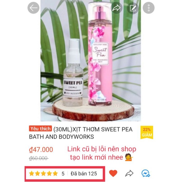 🍒SWEET PEA: _Mùi hương hòa quyện từ trái đậu ngọt, quả lê mọng nước,hoa lan Nam Phi, quả mâm xôi và xạ hương mềm _Ai thích tone kẹo ngọt thì không thể nào bỏ qua Sweet Pea được nè, siêu siêu dễ thương siêu siêu đáng yêu lun á 😍 tone kẹo nhưng mà khong phải ngọt gắt đâu nhen, kiểu ngọt lợ lợ kẹo berry í, có chút chua nhè nhẹ. Kiểu ngọt ngào dễ thương nhưng mà khong kém phần năng động, trẻ trung nhí nhảnh cực luôn nè _ Lưu hương và toả hương ổn nè. Họ hàng gần có thể tham khảo thêm Pink Chiffon, Mad About You, Strawberry Soda,... Cũng không kém phần nịnh mũi nhen ❤️