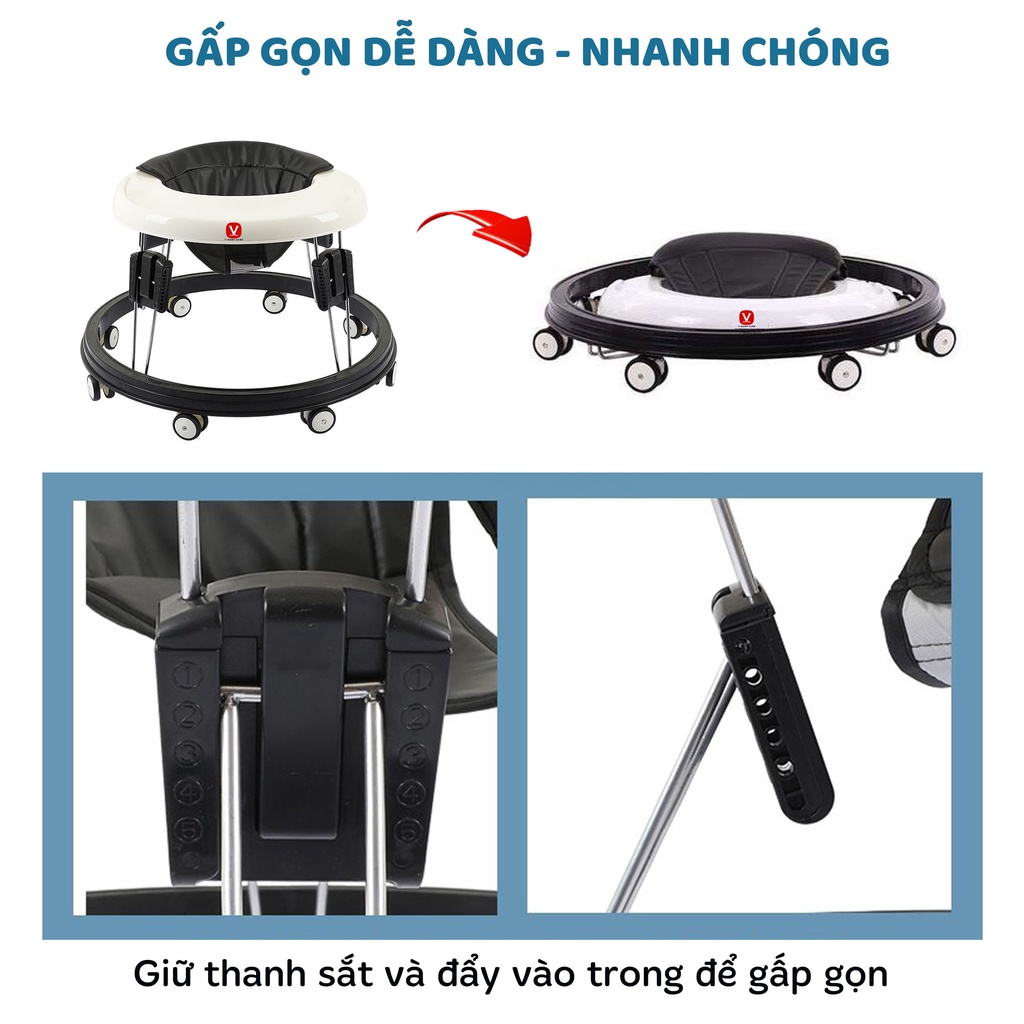 Xe tròn tập đi, xe tập đi cho bé điều chỉnh độ cao V-Baby 616 - mẫu mới 2023