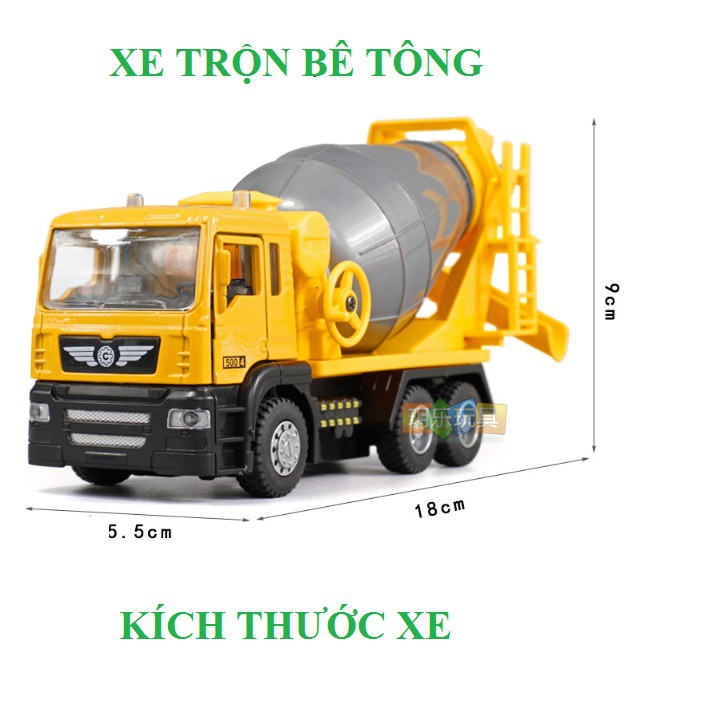 Xe trộn bê tông mini bằng hợp kim nhựa mô hình tỉ lệ 1:50 đồ chơi trẻ em có đèn và âm thanh
