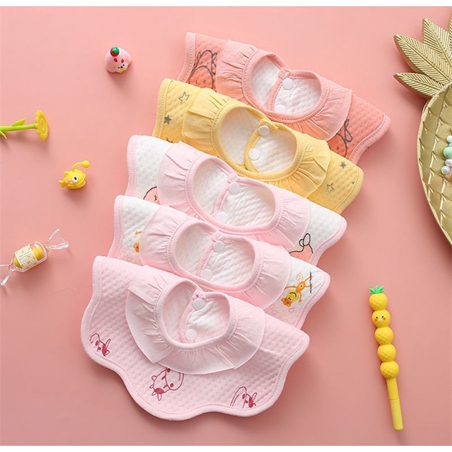 Yếm ăn dặm cho bé viền bèo chống thấm xoay 360 độ Y001