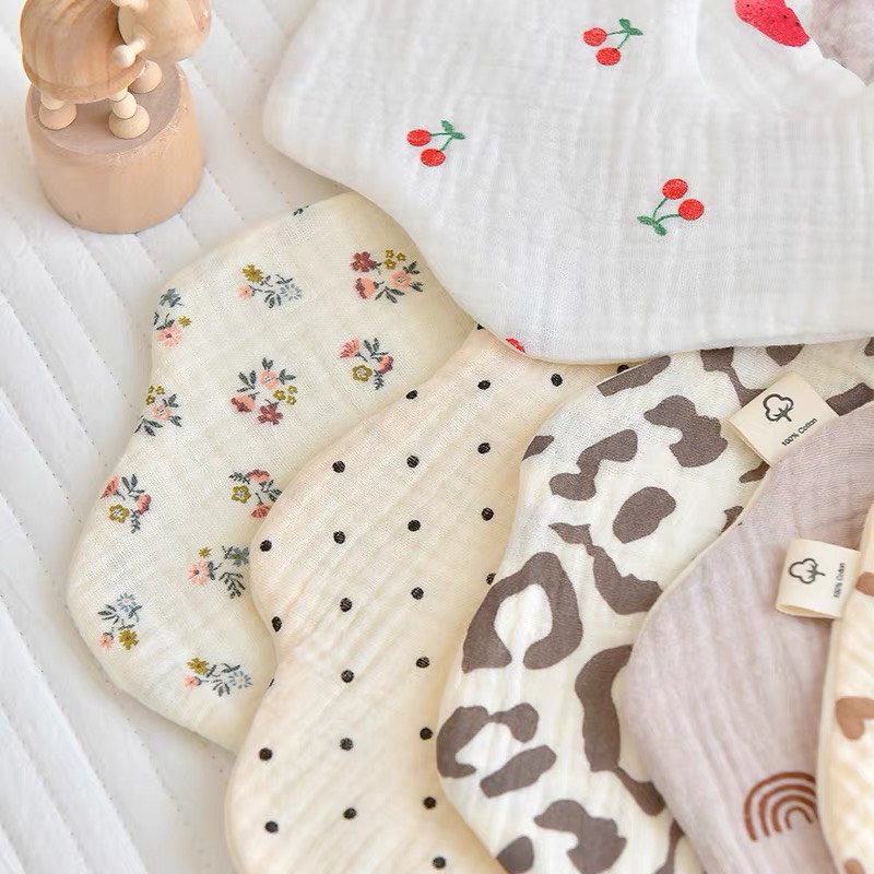 Yếm xô cổ tròn xoay 360 độ vải muslin cao cấp 6 lớp dày dặn thấm hút tốt họa tiết hoa/gấu vintage Hàn Quốc cho bé ăn dặm