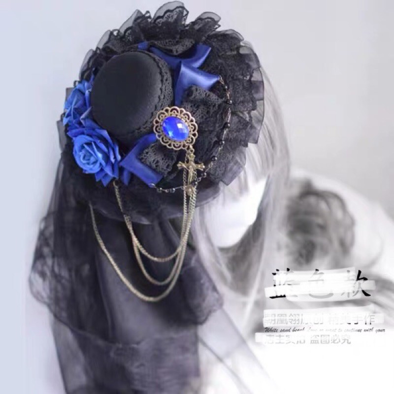 YASLC0048-Mũ topper hoa hồng kèm khăn voan chùm đầu