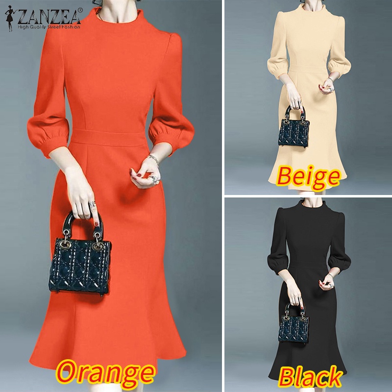 Zanzea Đầm midi Đuôi Cá Tay 3 / 4 Cổ Tròn Thời Trang Nữ Tính