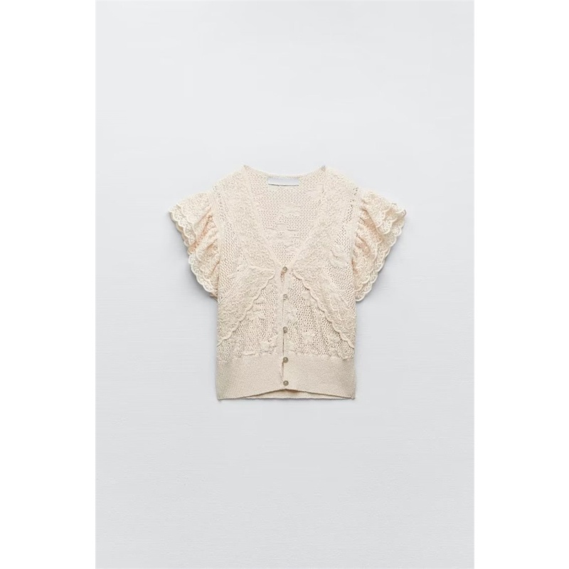 Zara Áo Dệt Kim Tay Ngắn Phối Lưới Thời Trang Cho Nữ 4331059 4331/059
